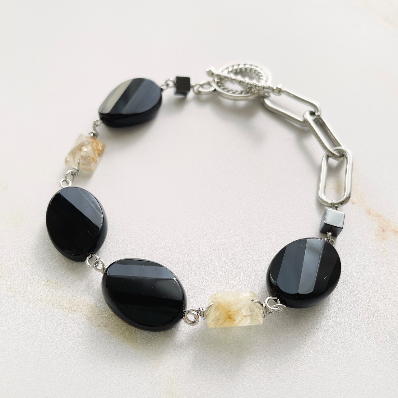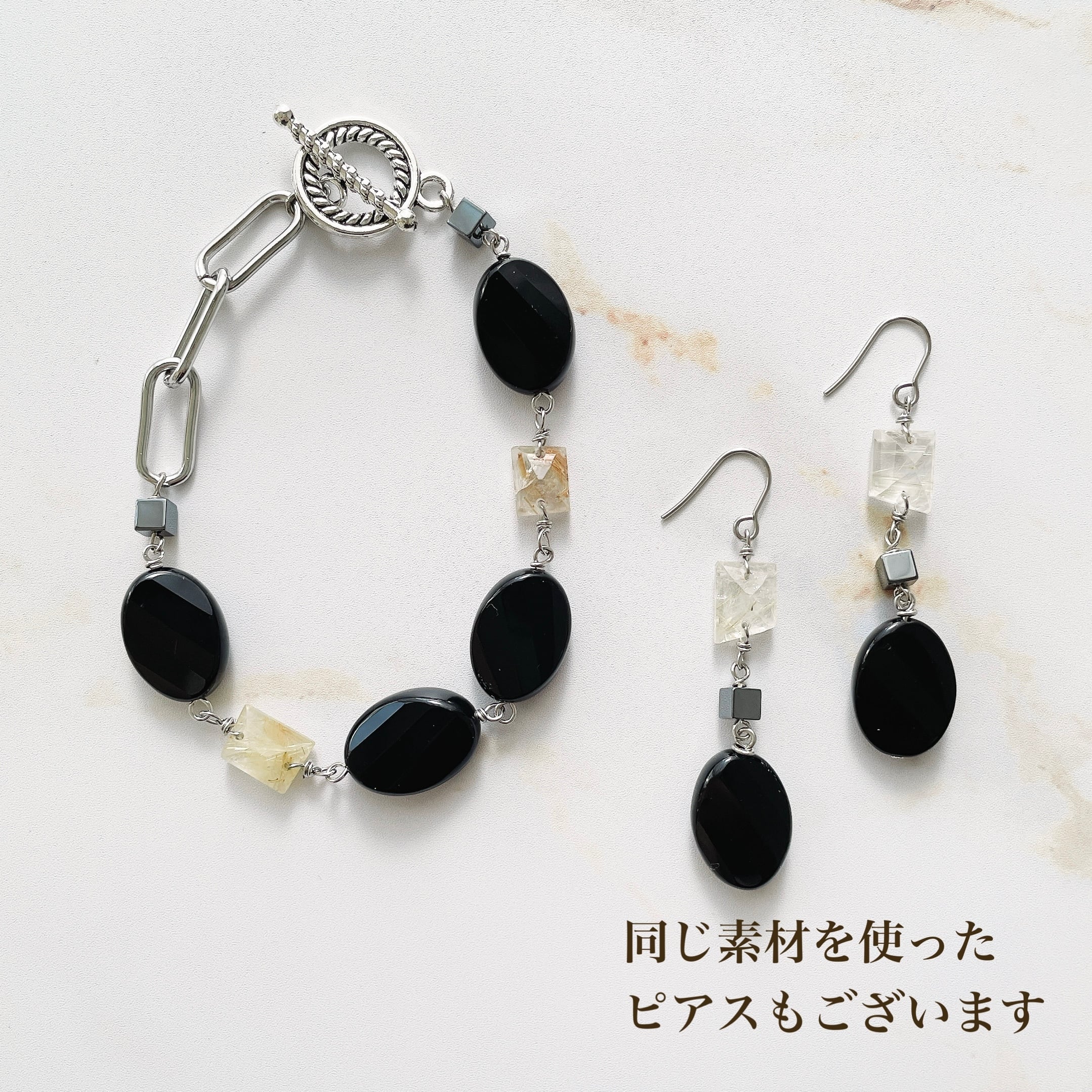 漆黒がカッコ良いブラックオニキスとルチルクォーツを合わせました。