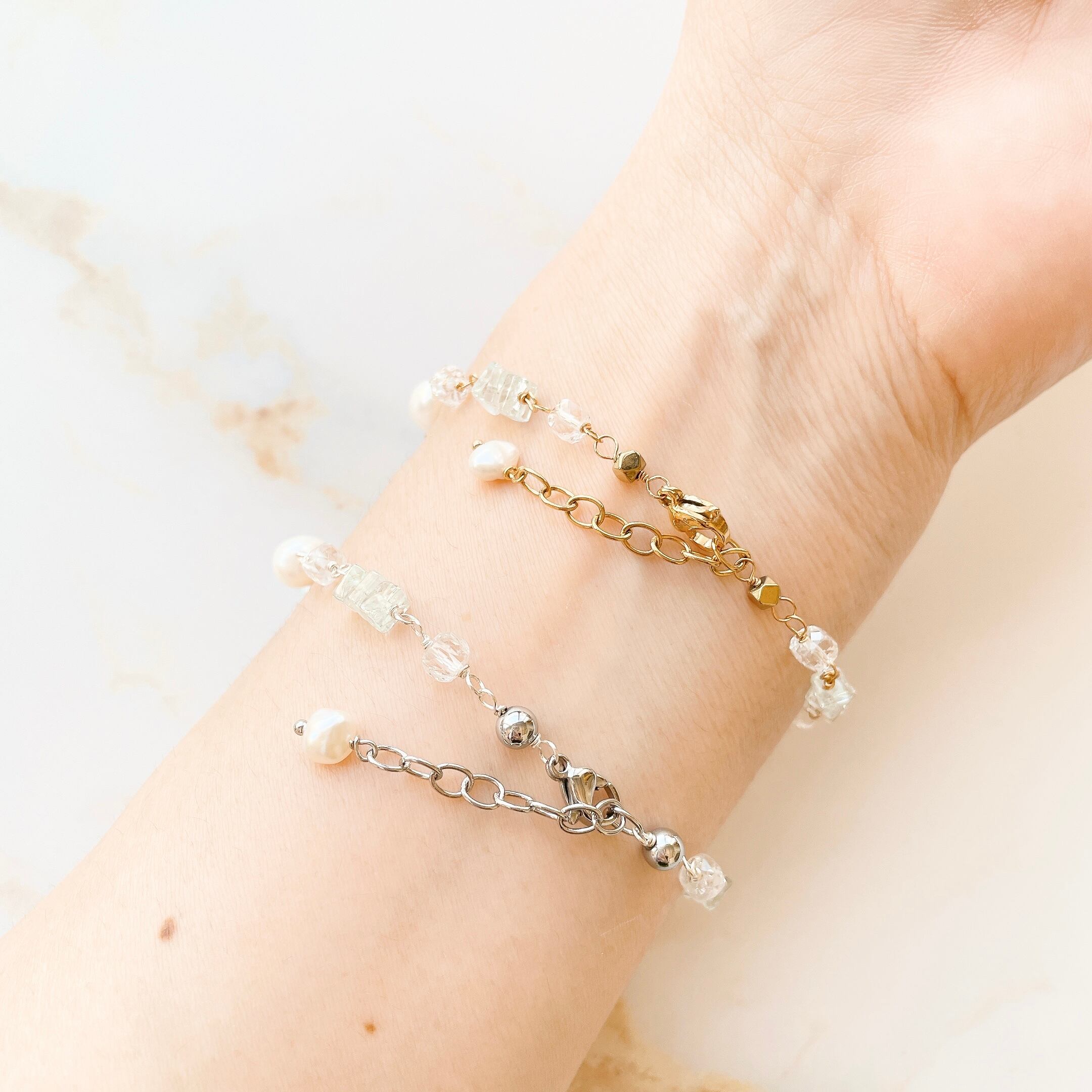 Mint Triangle*アマゾナイト×淡水パールのブレスレット