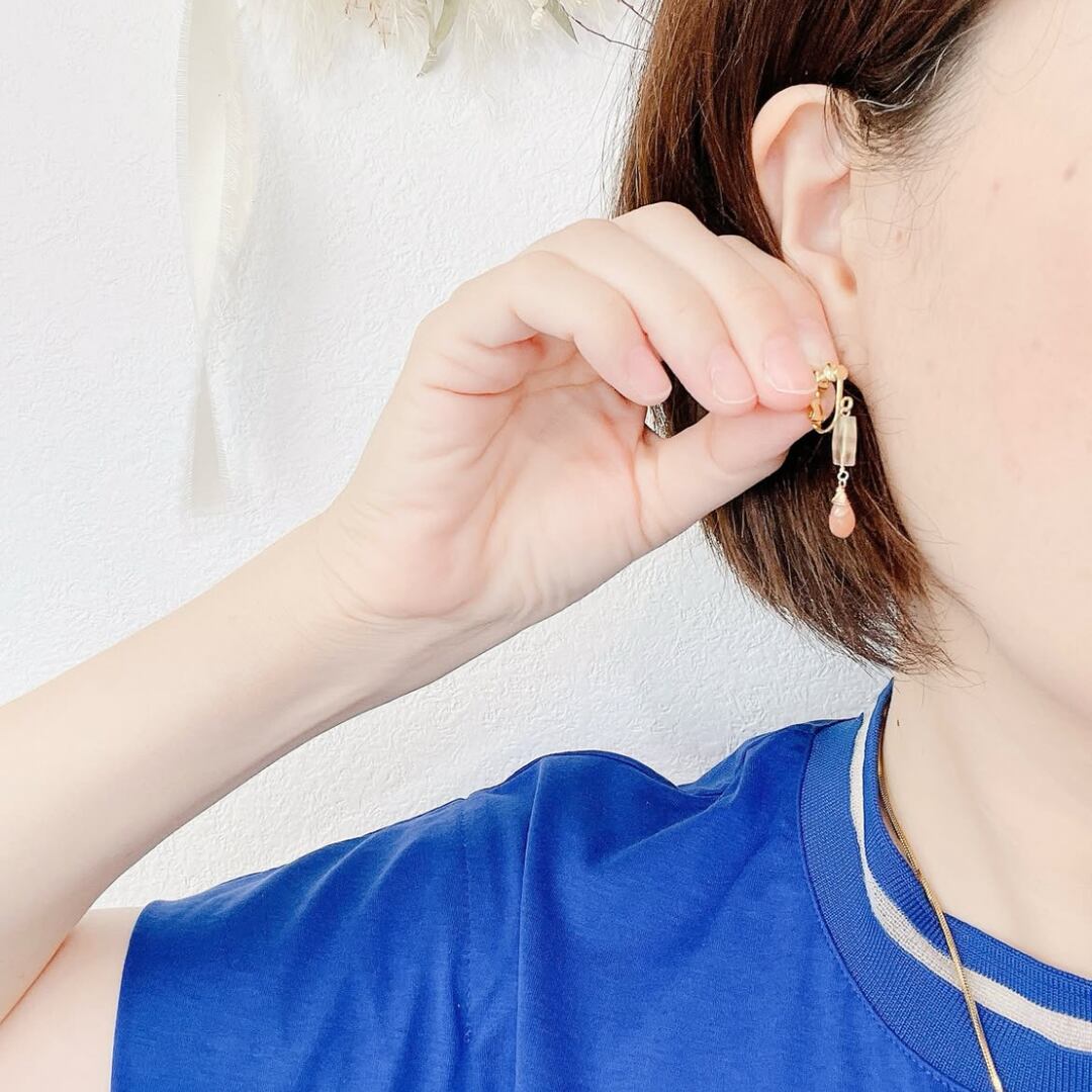 光を受けるたびにしずくのようにきらめき、耳元にやさしい彩りを添えます。