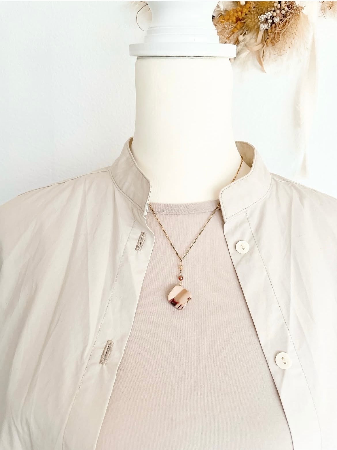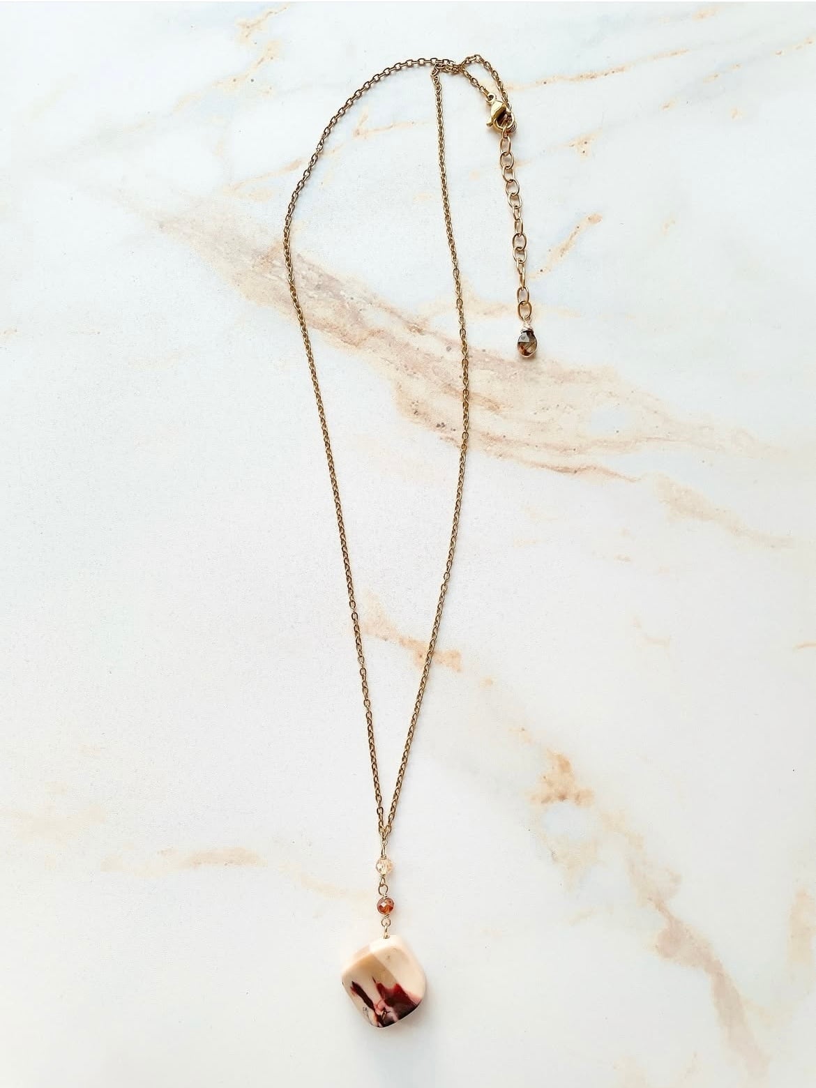 深みのあるブラウンとベージュのグラデーションが美しい、ムーアカイトのネックレス。
