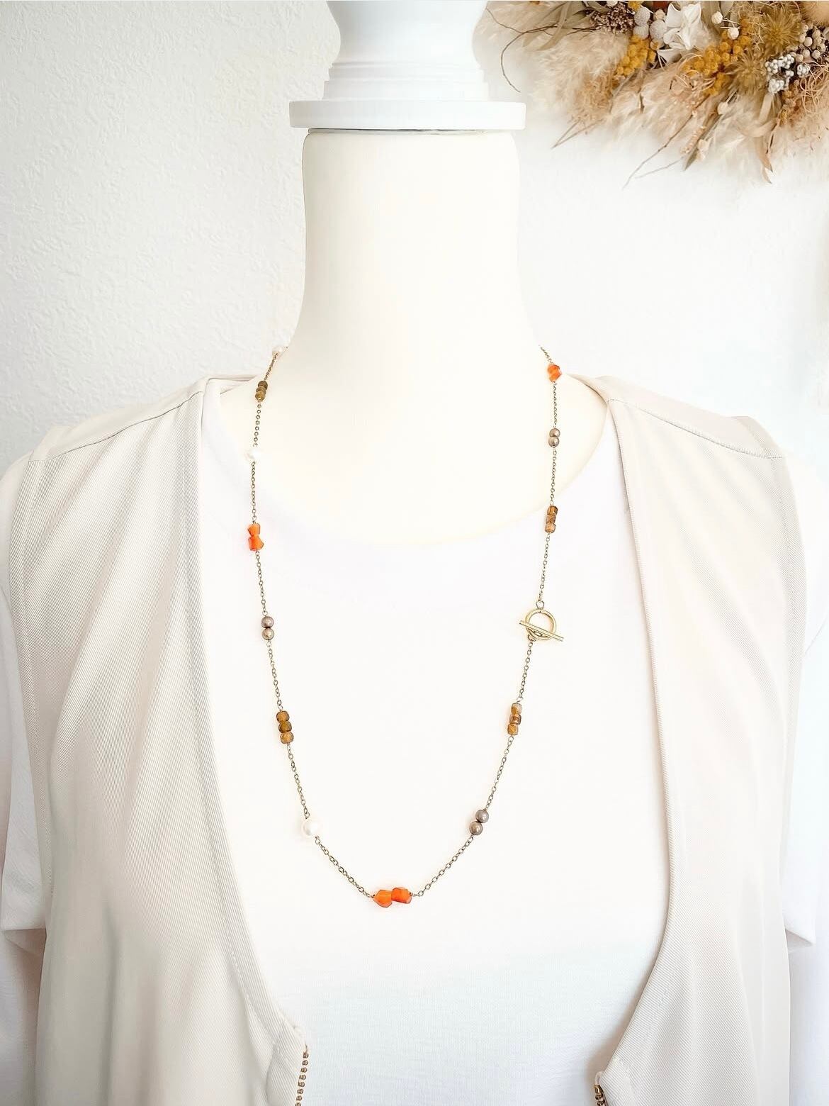 陽だまりの連なり*カーネリアン×トルマリン×淡水パールのロングネックレス
