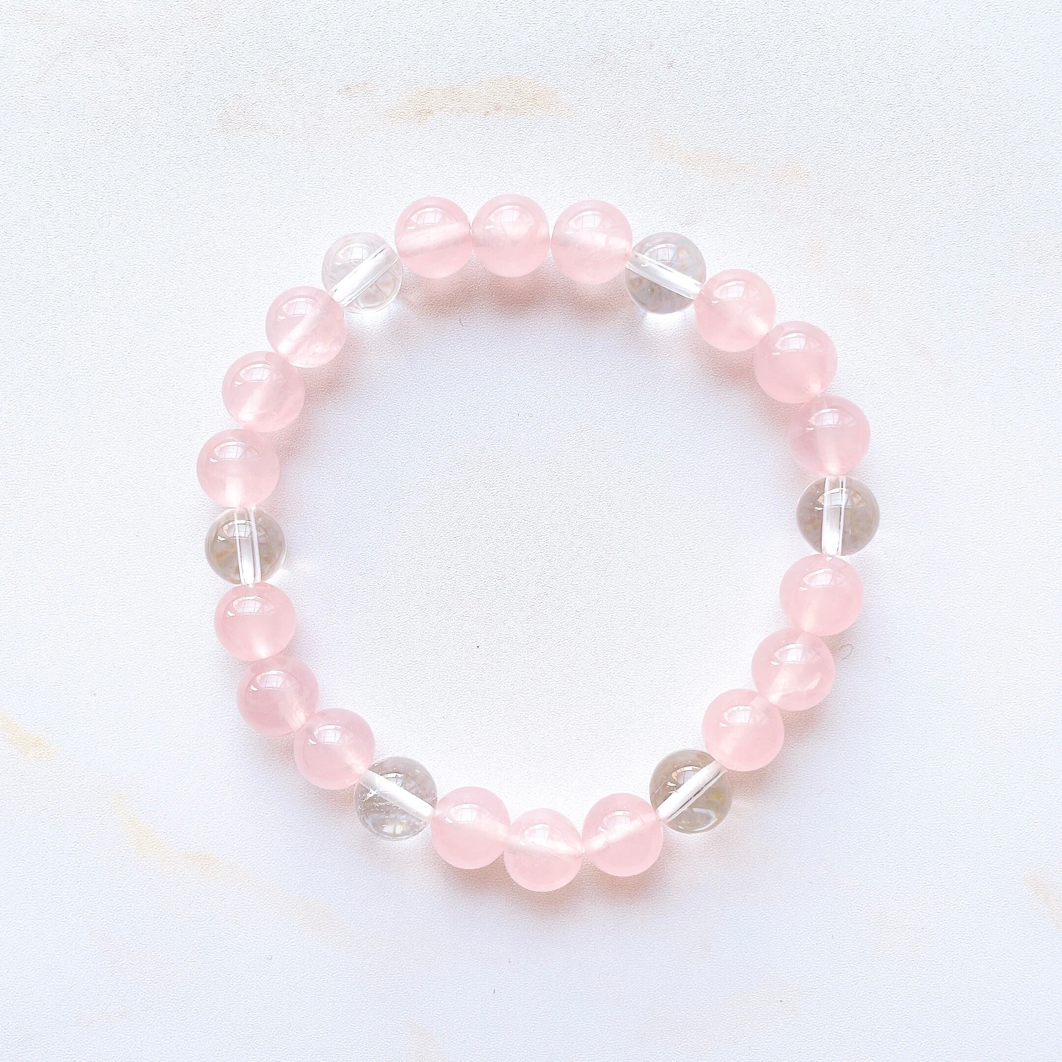 心を満たすピンクの癒し*ローズクォーツ&水晶ブレスレット